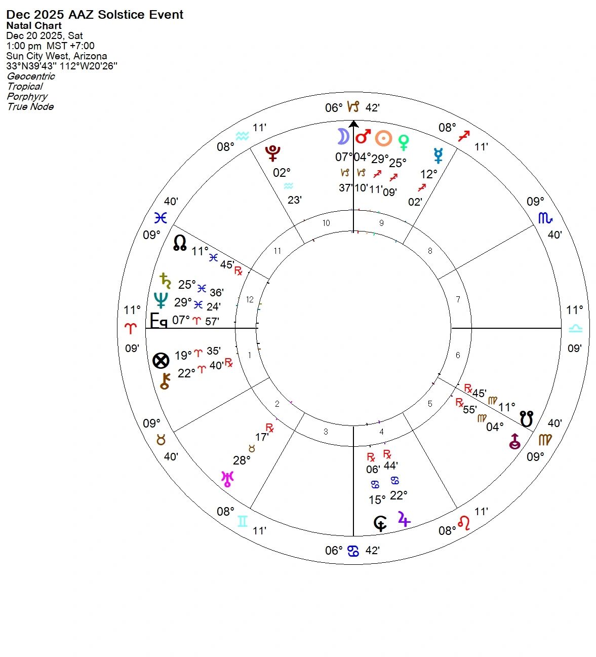 This event is not to be missed! December 20th is our free Solstice gathering. As we usually do, we’ll take a look at the Solstice chart and have a celebration of the holidays. Please join us for good fellowship, good astrology discussions, and a fabulous passage out of the Piscean past of 2025 into the Aries future of 2026!